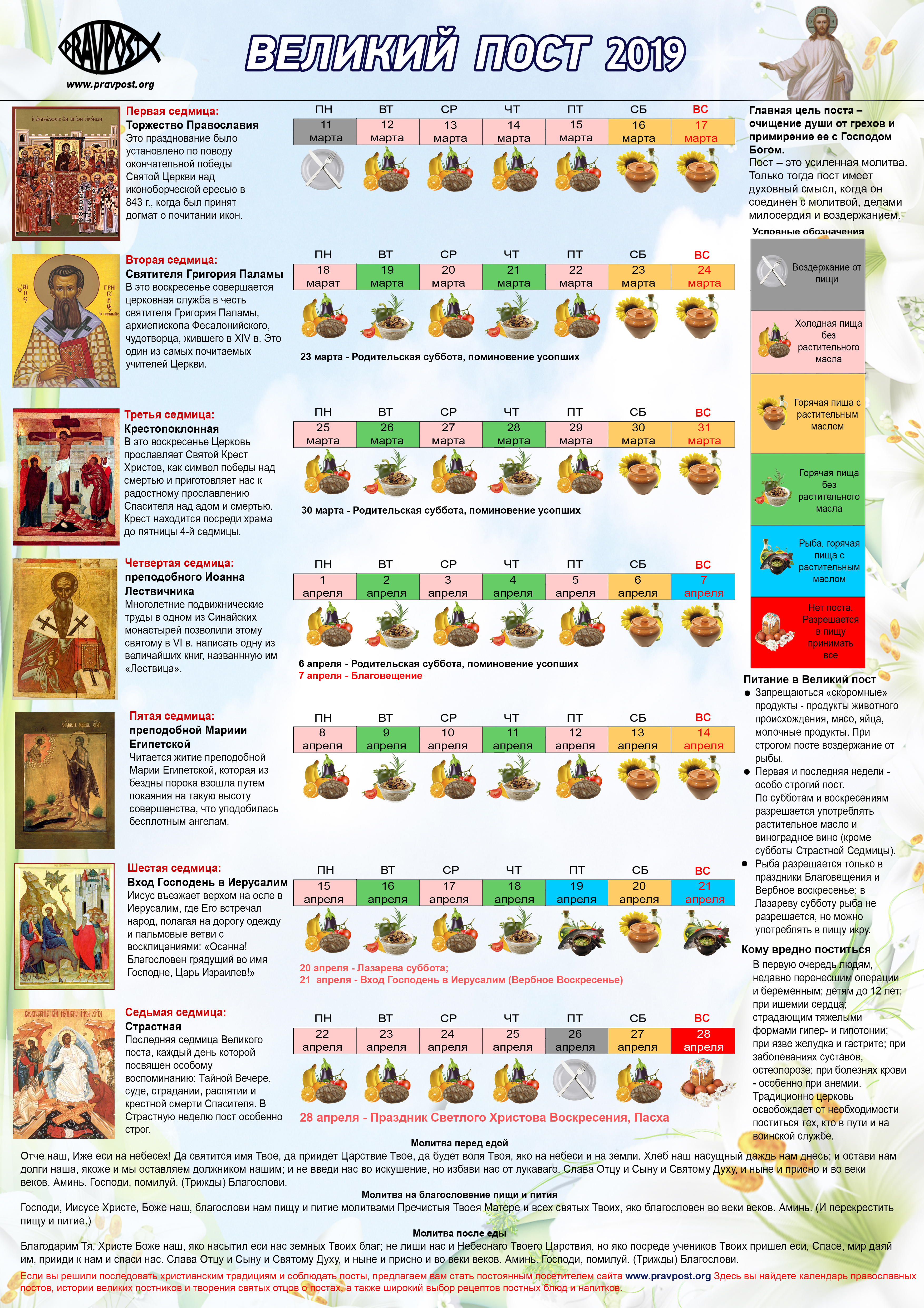 | Календарь Великого поста на 2019 год |