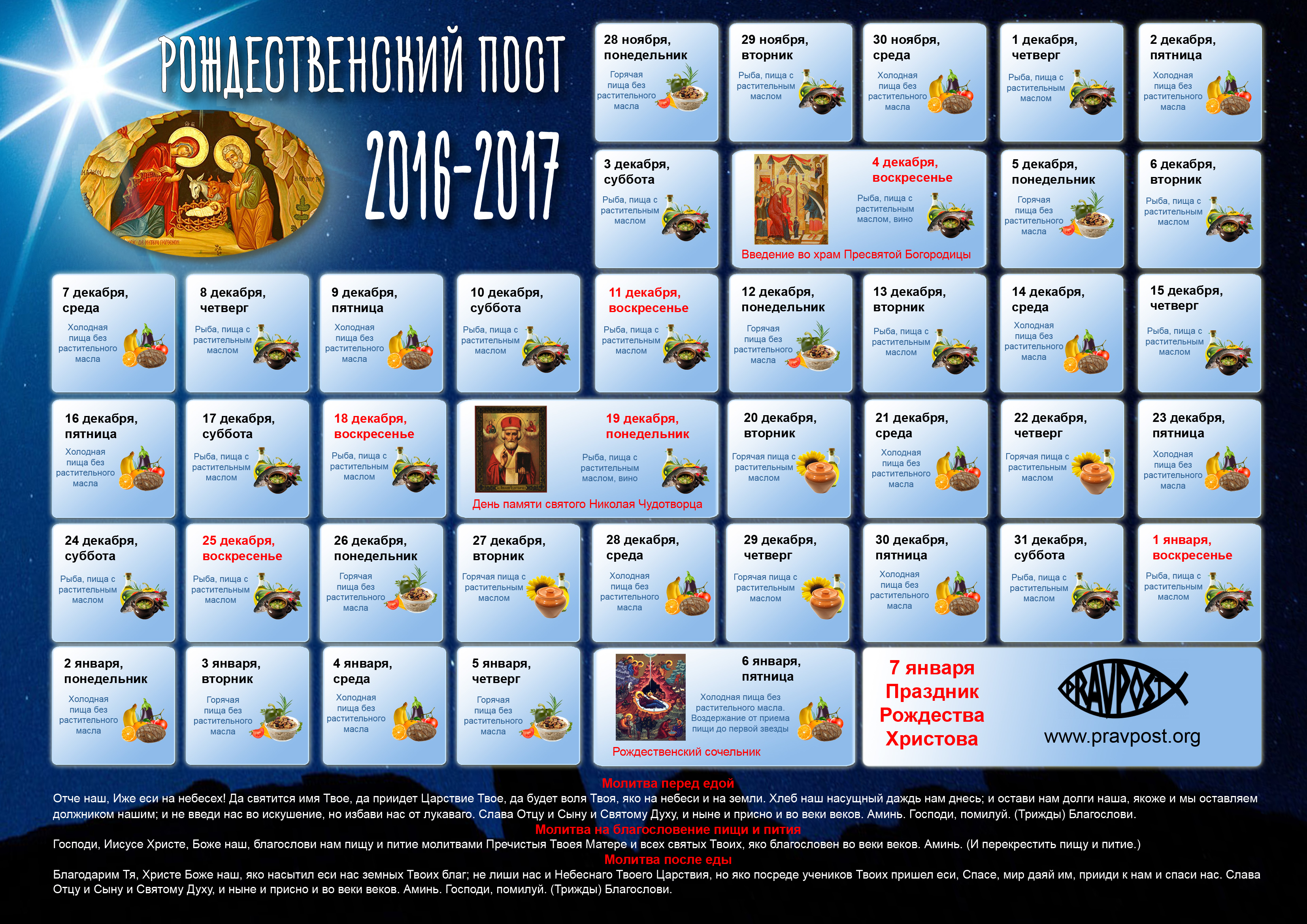 Двадцать восьмого ноября начинается Рождественский пост. 40 дней продолжается он, до великого праздника Рождества Христова.